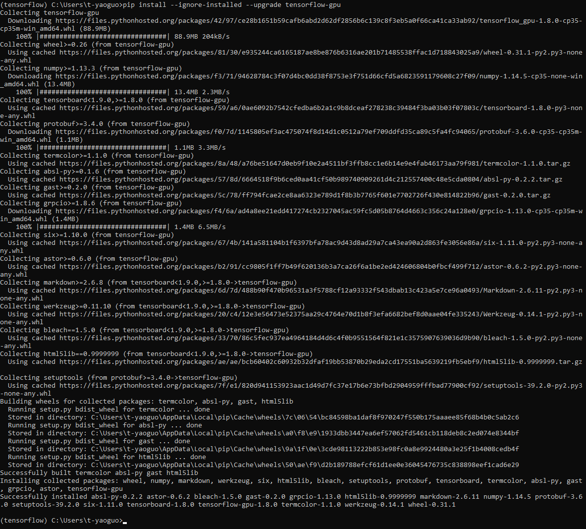 可以看到,使用卷积神经网络训练1000次可以让精度达到95%以上,据说训练20000次精度可以达到99.2%以上。由于CPU不行,太耗时间,就不训练那么多了。大家可以跟使用softmax训练识别手写数字进行对比。《07 训练Tensorflow识别手写数字》