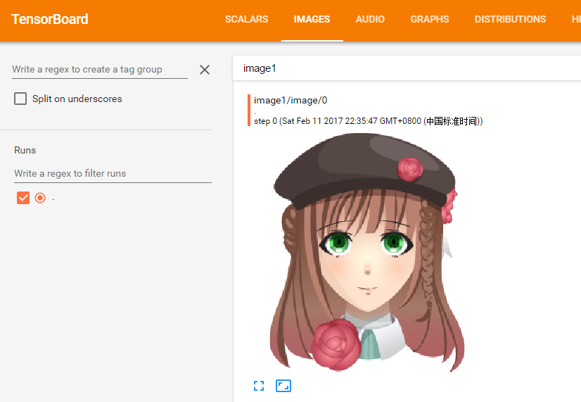 。在Tensorboard的Images标签页,就可以看到我们的png图片了。
