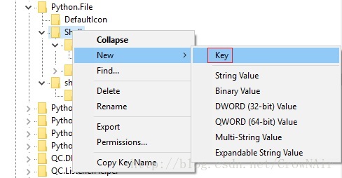右键点击 Shell ,然后选择 新建 ,然后选择 键: